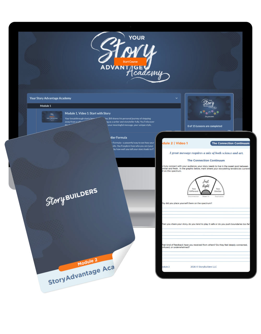 You are going to love the book, but there’s only so much I could fit inside. The full system for implementation had to be cut to keep the book focused and digestible—but that’s exactly why I created Your Story Advantage Academy.